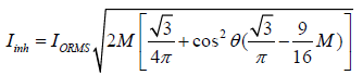 IGBT等開關(guān)器件的快速開通和關(guān)斷,在變流器直流側(cè)電流中所引起的開關(guān)頻率及其偶數(shù)次的高頻分量,這部分紋波電流都需要流過中間直流濾波電容。采用SVPWM工作的變流器,紋波電流有效值與交流輸出相電流的關(guān)系如下:
