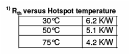 風(fēng)電變流器要求工作環(huán)境溫度為45℃,如要求電容內(nèi)部熱點溫度小于75℃,則電容溫升應(yīng)小于30K。由電容廠家提供的電容內(nèi)部熱點到環(huán)境的熱阻如下表所示,如果熱點溫度為75℃以下時電容的發(fā)熱功率應(yīng)該小于7.14W。
