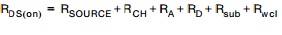 DMOS溝槽MOSFET的導(dǎo)通電阻是活動載流子必須流經(jīng)的各 個區(qū)域的電阻之和 (如圖 2 所示)。